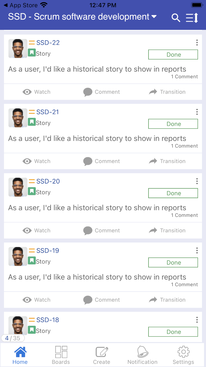 stay connected from your mobile with simple access to all your issues, check issues you are watching, issues you are asssigned and reported by you.