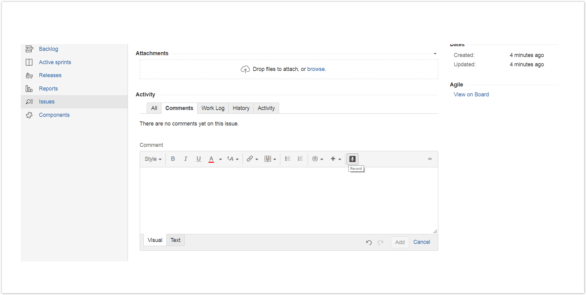Record a voice note upon adding a comment on any ticket in Jira with the ability to link this note as a reference in your comment!