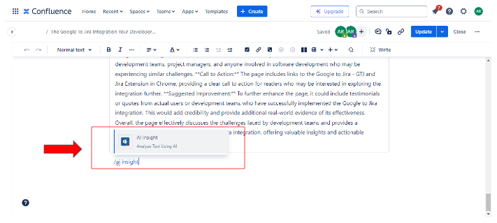 AI Insights enables automated analysis, summarization, and interaction with Confluence pages.