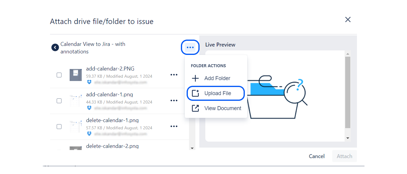 | 2 | Click on the three dots at the top right and select the Upload File option, and choose the file you want to upload. |