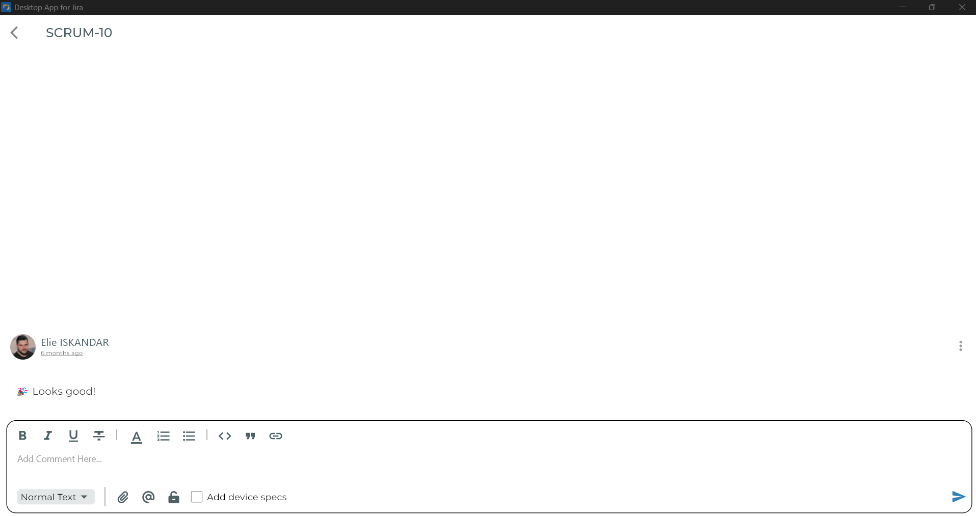 - In the issue screen view, click the Comment button and write your comment in the rich text editor
