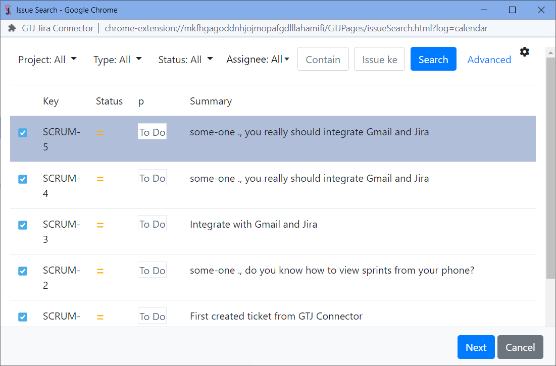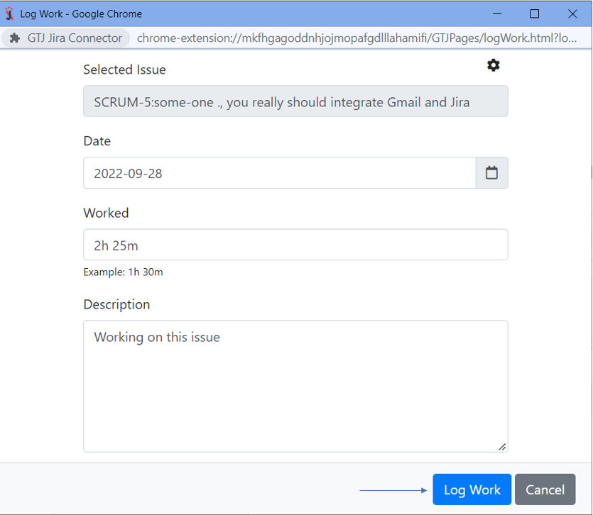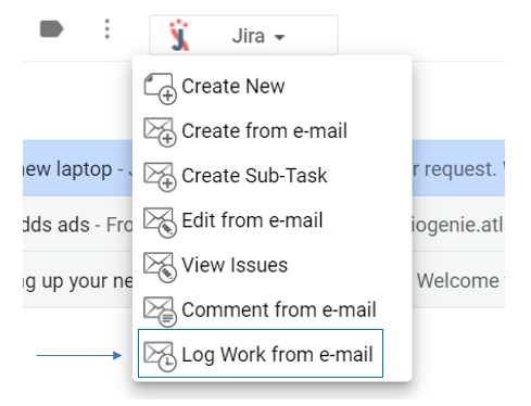 | 3 | Go to the Jira Extension in Chrome extension and select Log work from e-mail or Log work from Calendar |