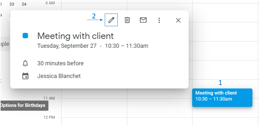 | 2 | Select an email or edit a Calendar event you wish to add a comment using |