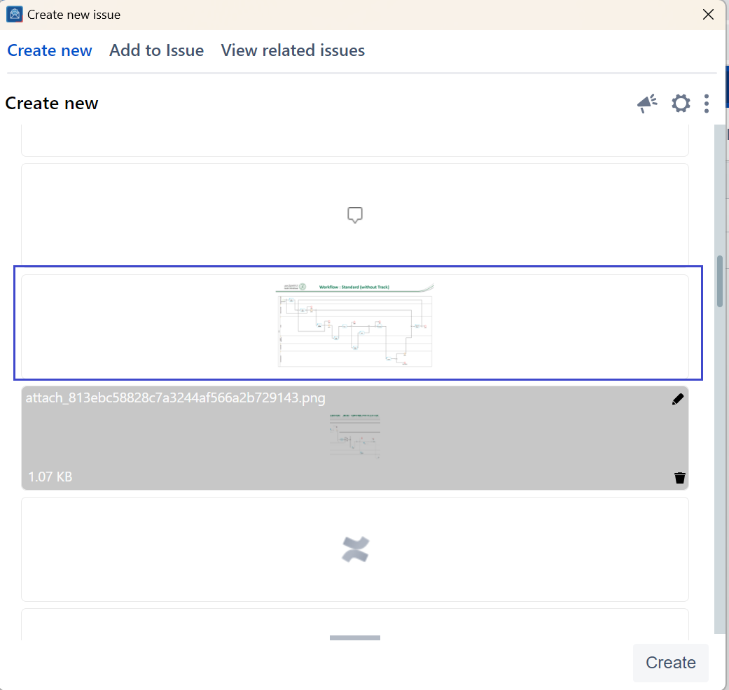 Within the Attachments section of Microsoft Outlook for Jira, you can preview files on both the Create and Add to issue screens.