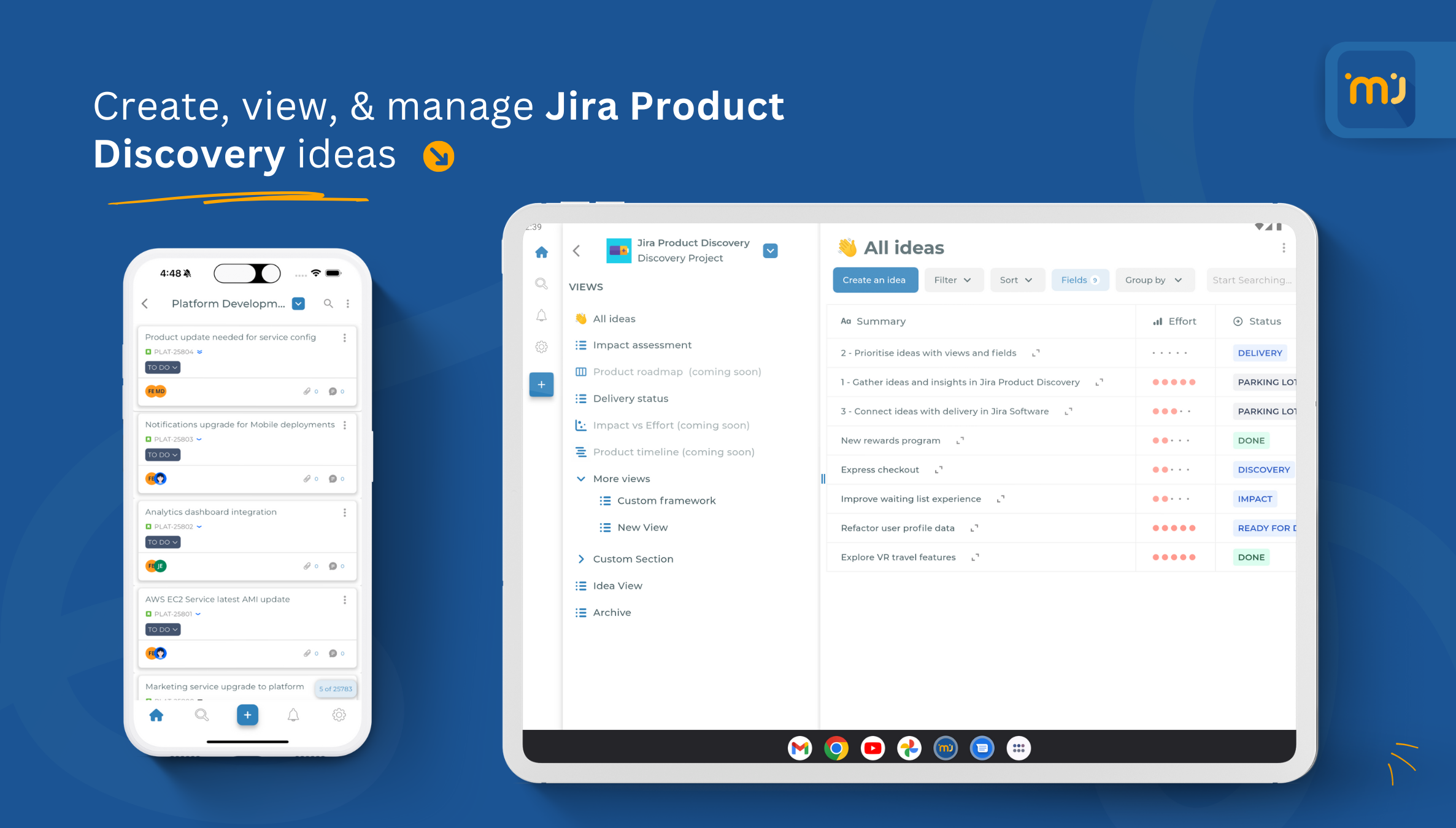 Welcome to the latest release of Mobile for Jira v5.4.0, where you can unleash the power of product ideation on the go with Jira Product Discovery and get a better user experience.