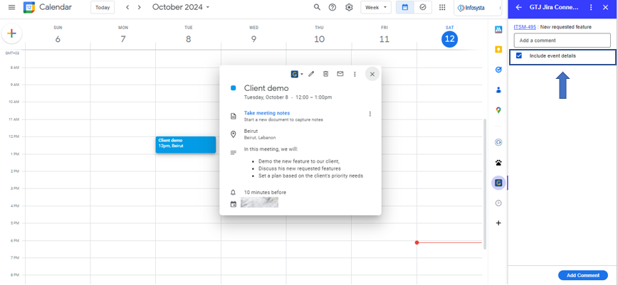Learn how to seamlessly add Calendar details to your Jira tickets, whether creating a new ticket or adding a comment.