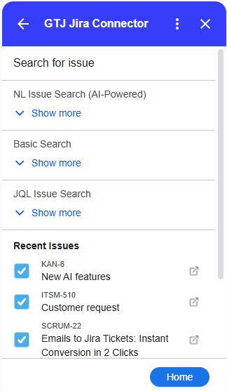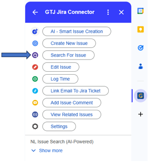 | 2 | Open the GTJ Jira Connector add-on, after opening an email, or selecting an event |