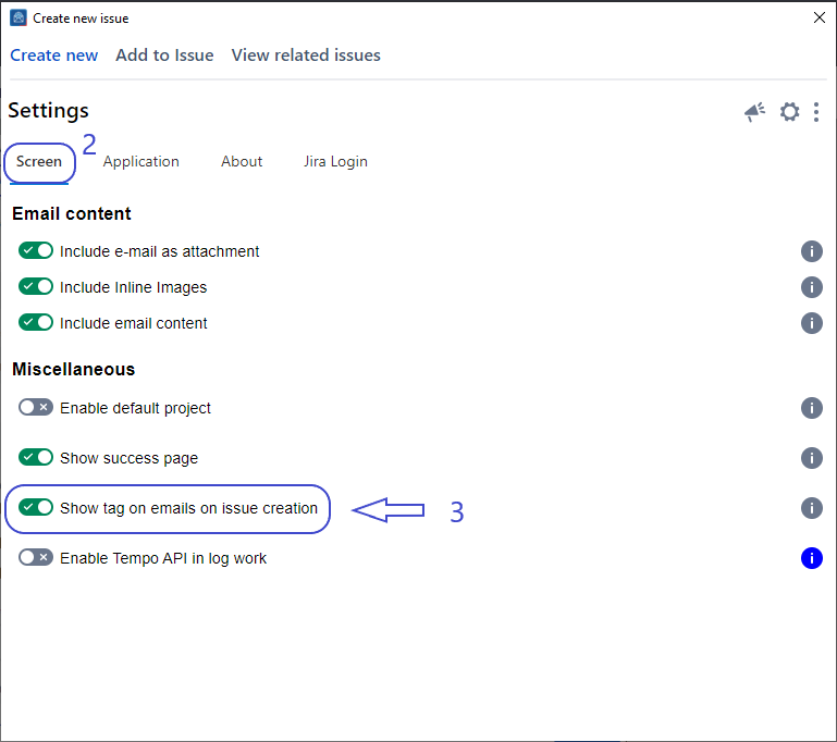 2. Click on the Show tag on emails on issue creation toggle to enable this feature